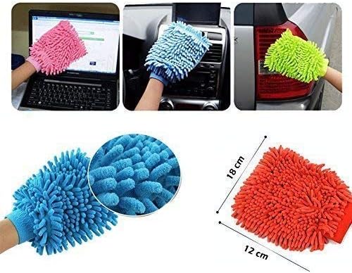 - 2 Pcs Assorted colors Single Sided Microfiber Chenille Mit Cleaning Glove for Car, Computers, Home, Kitchen